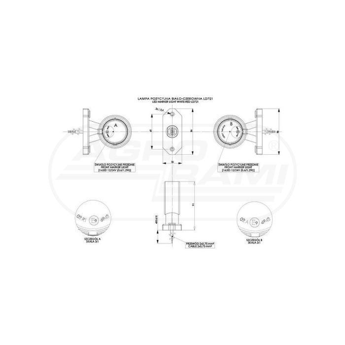 Lampa obrysowa biało-czerwona na wysięgniku krótkim