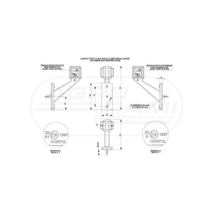 Lampa obrysowa Horpol 44 na wysięgniku krótkim diod Prawa