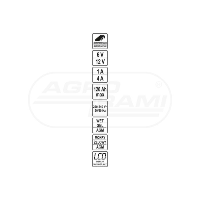 Prostownik elektroniczny z wyświetlaczem YATO 6-12V 1/4 A