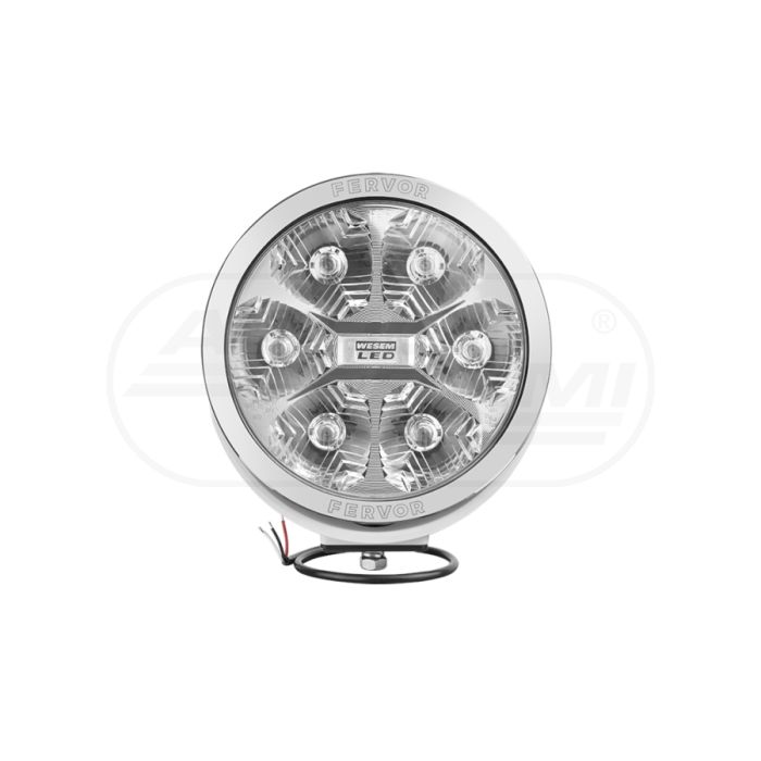 Refl.drogowy LEDF biała obudowa fi220 2400lm/LC50 12/24V+osłona pełna,przew.0.5m,ramka chrom.,