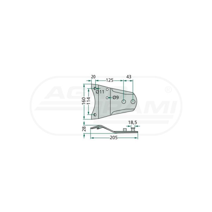 Trzymak noża FELLA, Dł-205, Sze-160, Otw.-10, Odległość otworów 114