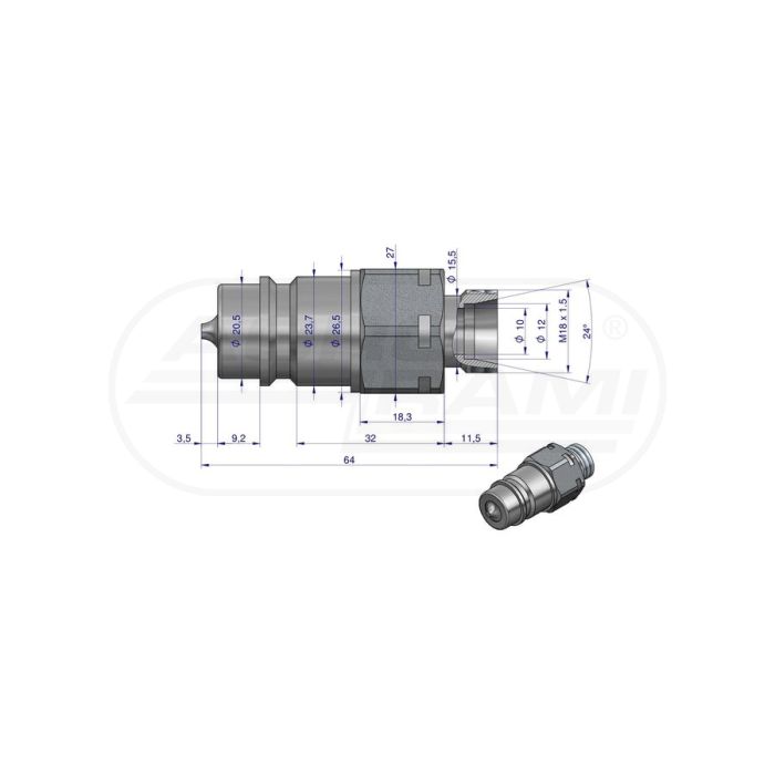 Szybkozłącze hydrauliczne wtyczka M18x1,5 gwint zewnętrzny EURO