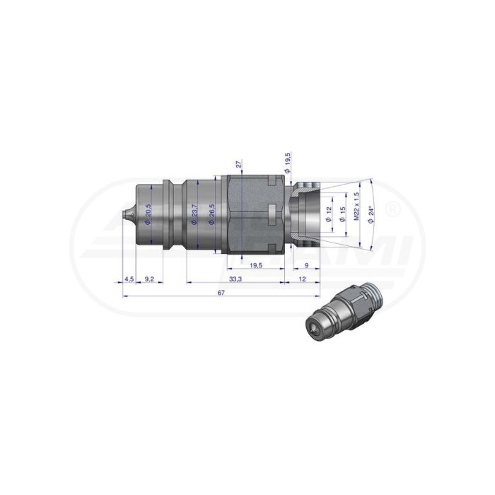 Szybkozłącze hydrauliczne wtyczka z eliminatorem ciśnienia M22x1,5 gwint zewnętrzny EURO
