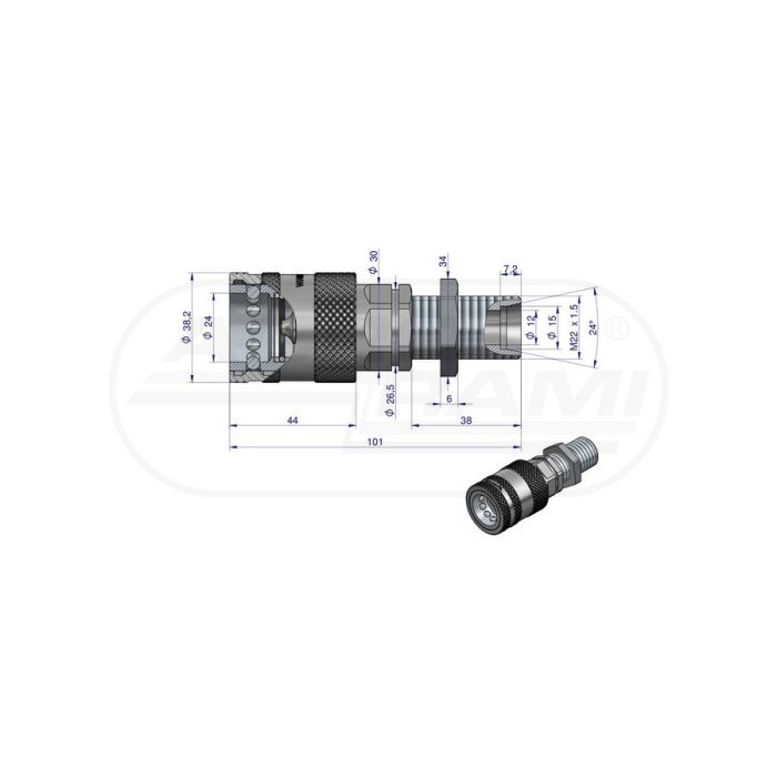 Szybkozłącze hydrauliczne gniazdo long z eliminatorem ciśnienia M22x1,5 gwint zewnętrzny EURO