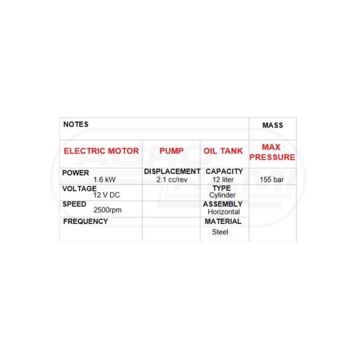 | Numer katalogowy | SILNIK ELEK. : 1,6 kW, 12 V POMPA :1,8 C |