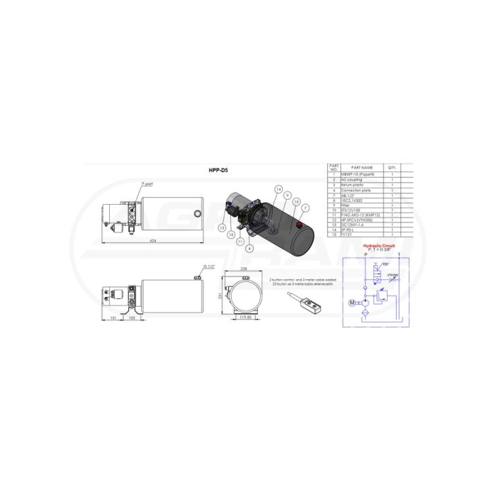 Pompa hydrauliczna ze zbiornikiem 12V 8-litr HPP-D5-2108