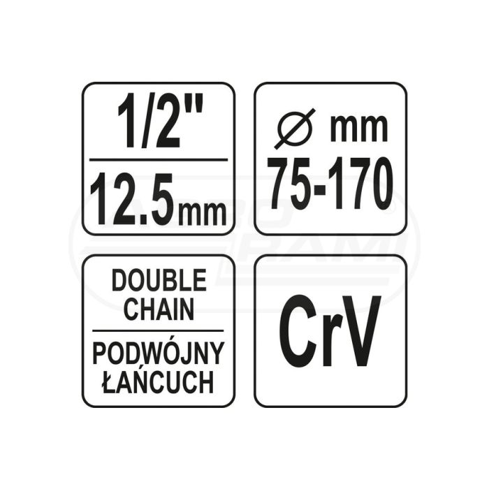 Klucz łańcuchowy do filtrów oleju zakres YATO 75-170 mm 1/2"