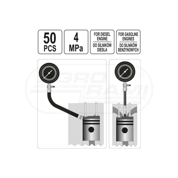 Miernik ciśnienia sprężania w silnikach diesla i benzynowych YATO 50 elementów