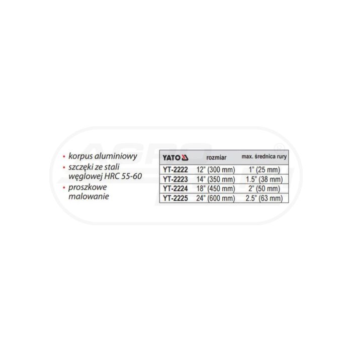 Klucz do rur aluminiowy YATO 450 mm