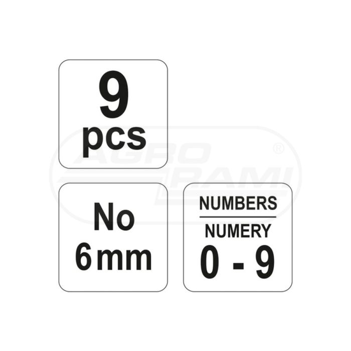 Znaczniki numeratory cyfrowe YATO 6 mm 9 elementowy