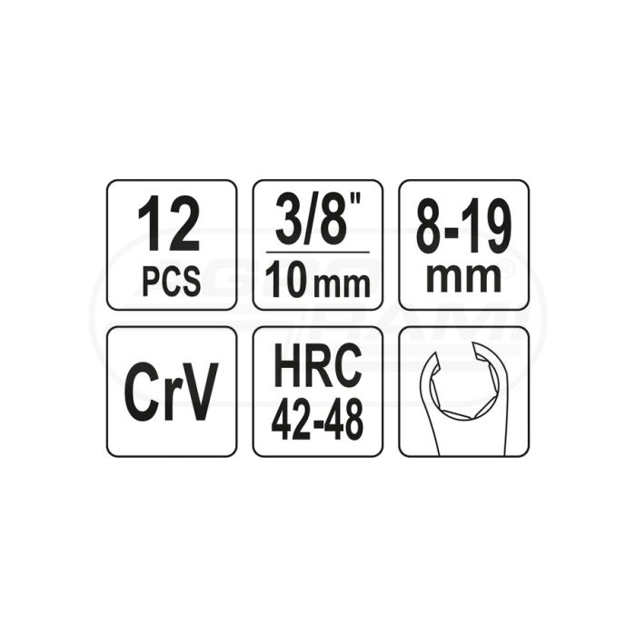 Zestaw kluczy przegubowych oczkowych otwartych YATO 3/8" 12 elementów