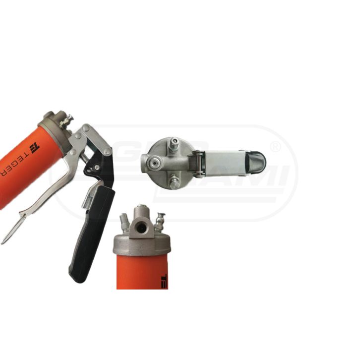 Wysokiej jakości ręczna smarownica z wbudowanym mechanizmem regulacji z trybem wysokiego ciśnienia i większą objętością.