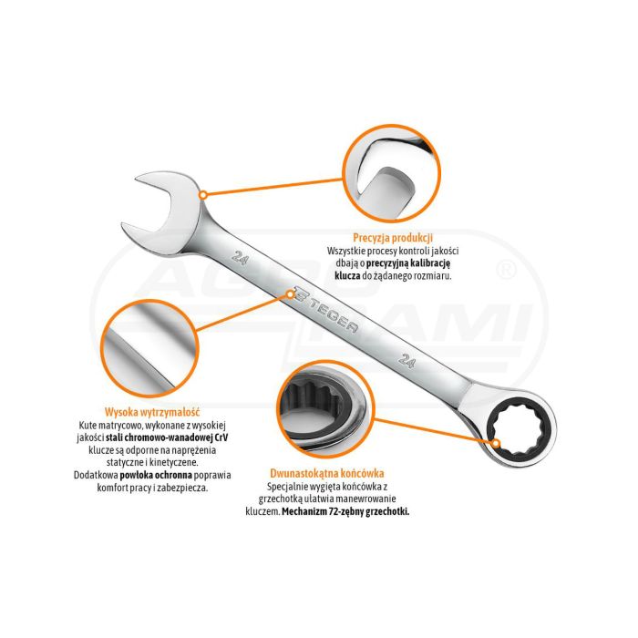 Zestaw kluczy płasko - oczkowych z grzechotką TEGER