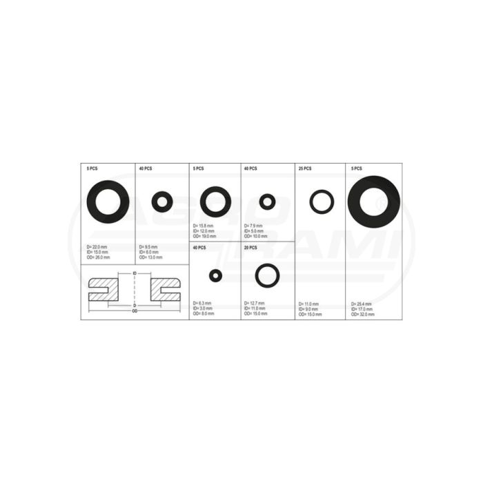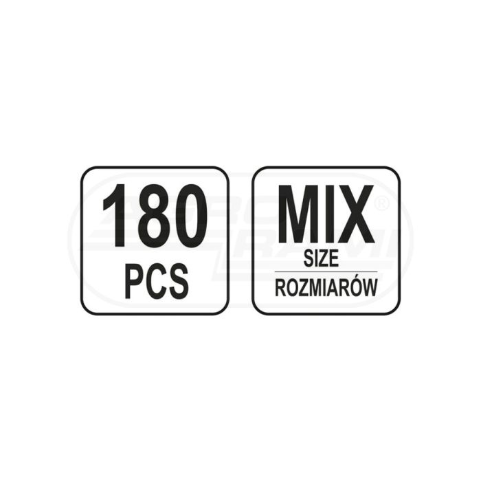 Przelotki gumowe mix rodzajów YATO 180 sztuk