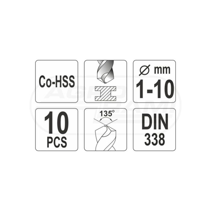 Zestaw wierteł do metalu CO-HSS YATO 1-10 mm 10 elementowy
