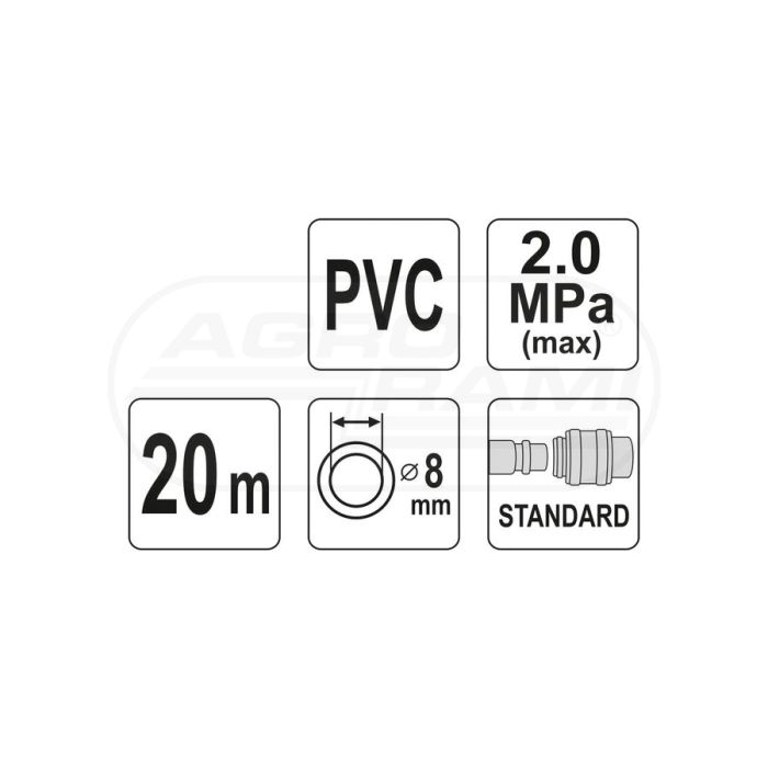 Wąż pneumatyczny zbrojony PVC z szybkozłączami YATO 8mm x 20m