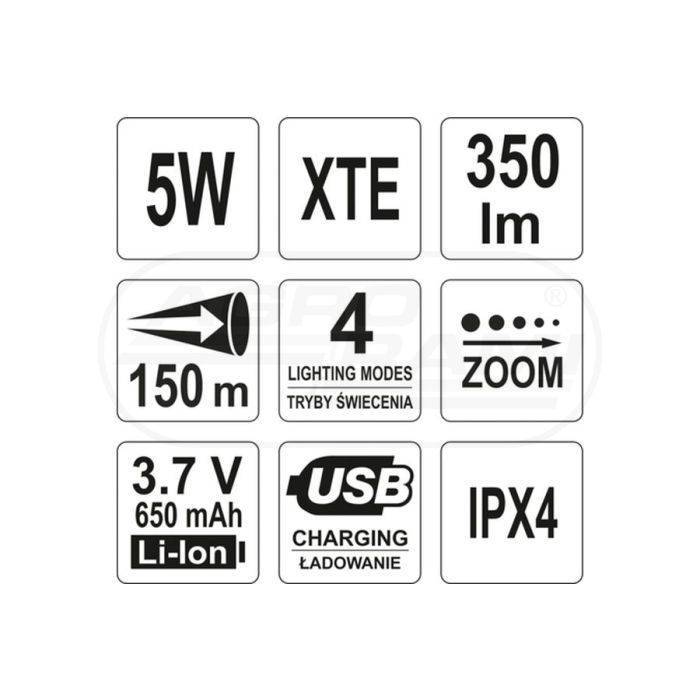 Latarka USB YATO 5W 94x27 mm