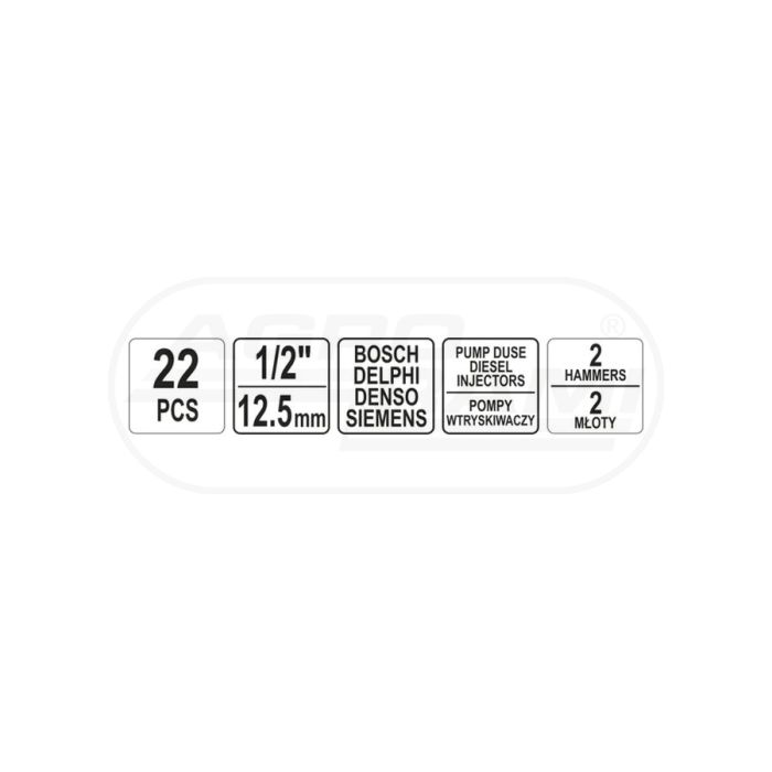 Zestaw ściągaczy bezwładnościowych do wtryskiwaczy kompatybilny z dyszami wtryskiwaczy BOSCH, DELPHI, DENSO, SIEMENS YATO 22 elementowy