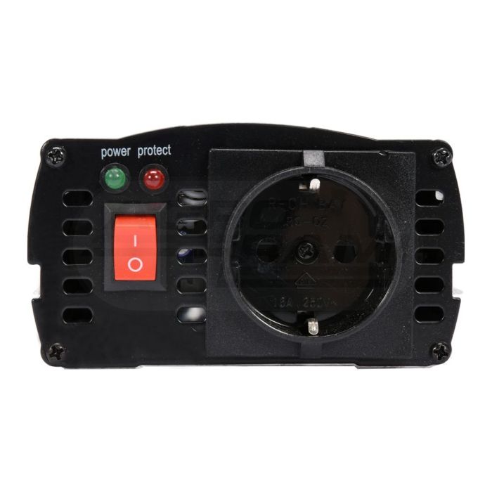 Przeznaczenie / zastosowanie Przetwornica napięcia YT-81491 12V /230V-240V 800W służy do zasilania urządzeń elektrycznych wymagających napięcia przemiennego 230V z akumulatorów i instalacji samochodowych o napięciu stałym 12V. Przetwornice znakomicie sprawdzają się w miejscach gdzie nie ma możliwości bezpośredniego podłączenia do sieci energetycznej. Zawartość opakowania Urządzenia do zasilania urządzeń elektrycznych wymagających napięcia 230 V w sytuacji, gdy dysponujemy jedynie napięciem 12 V. • zabezpieczenie termiczne przed przeciążeniem • sygnalizacja niskiego napięcia akumulatora • napięcie wejściowe: 12 V • napięcie wyjściowe: 220-240 V / 50 Hz • przewody zasilające