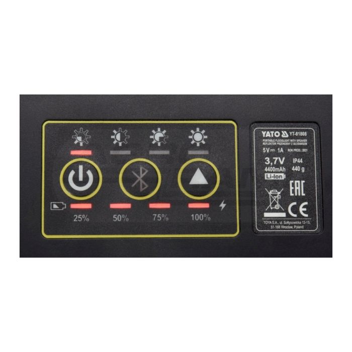 Reflektor przenośny z głośnikiem POWERBANK LI-ION, IP44 YATO 2x15W 4400 mAh 2000lm