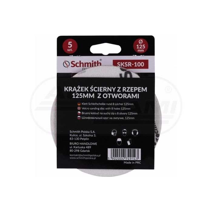 Krążek ścierny z rzepem 125mm z otworem P-100 -5szt