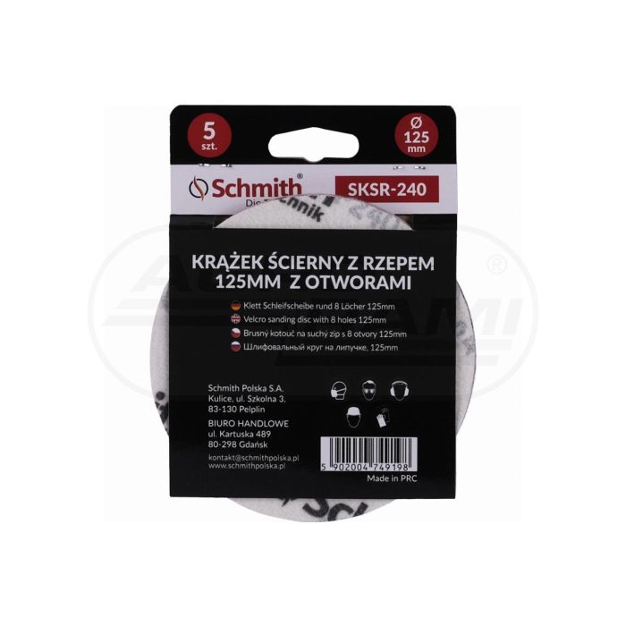 Krążek ścierny z rzepem 125mm z otworem P-240- 5SZT
