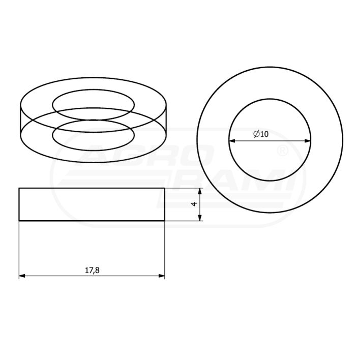 - wymiary: D=17,8mm; d=10mm; h=4mm
