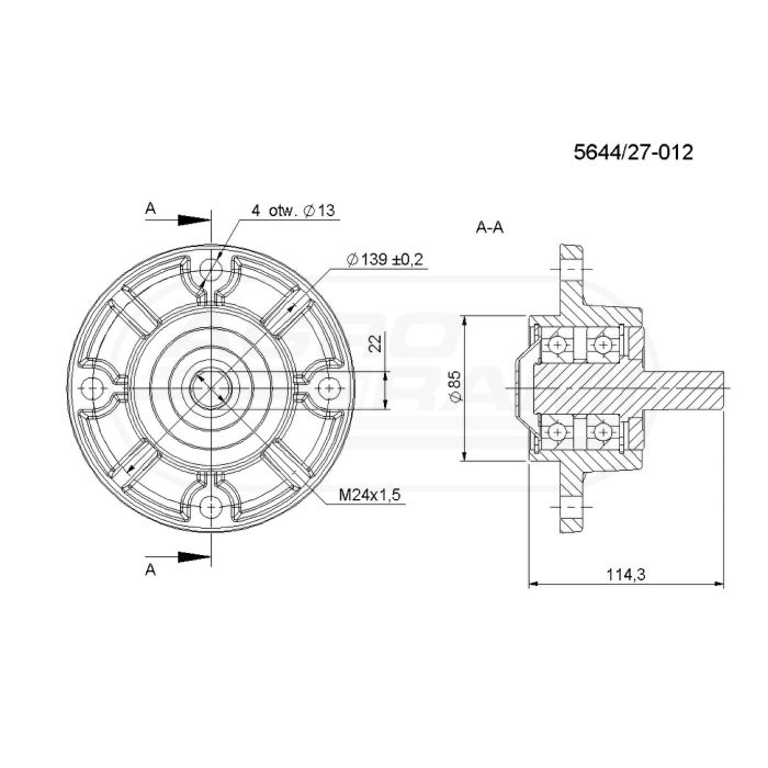 Średnica zewnętrzna kołnierza montażowego [mm] 85