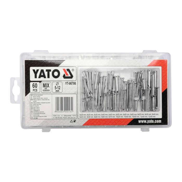 Sworznie z łbem i otworem mix rozmiarów YATO 60 sztuk