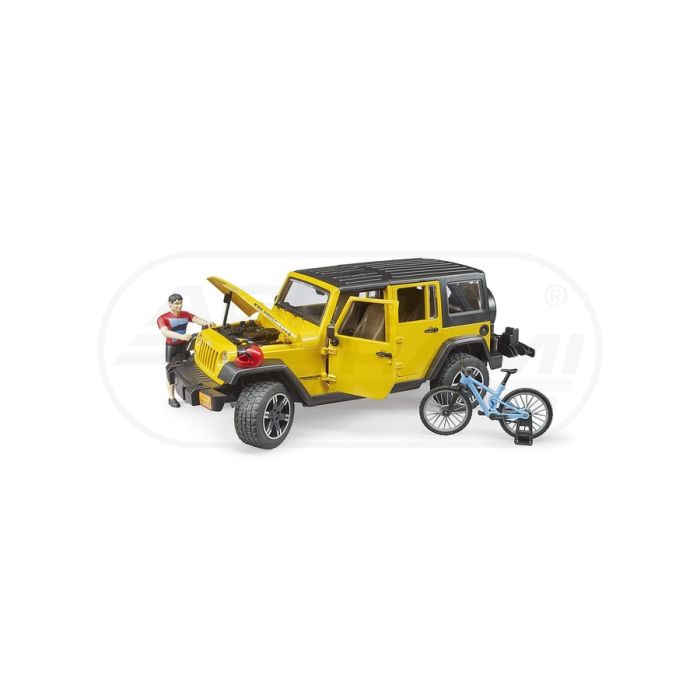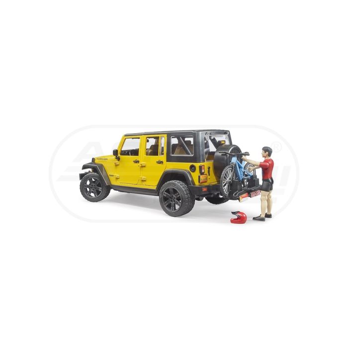 Jeep Wrangler rubicon z figurką kolarza i rowerem górskim Bruder 02543 BR02543 BRUDER