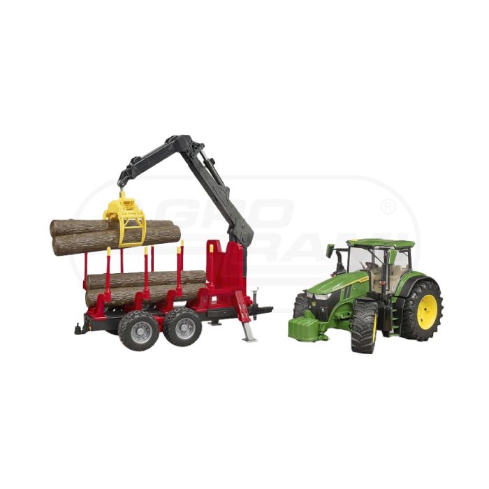 John Deere 7R 350 z przyczepą spedycyjną i 4 pniami drzew Bruder 03154 BR-03154 , BRUDER