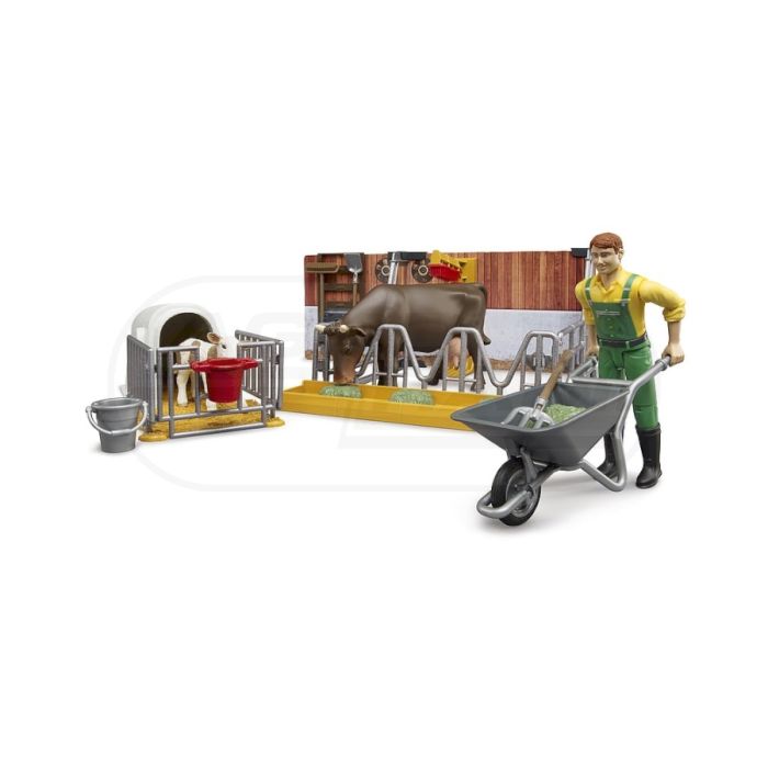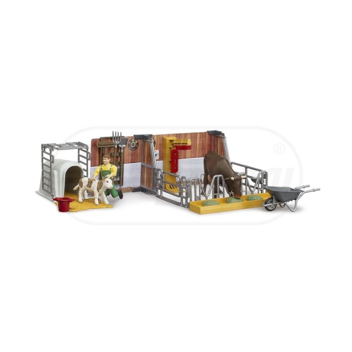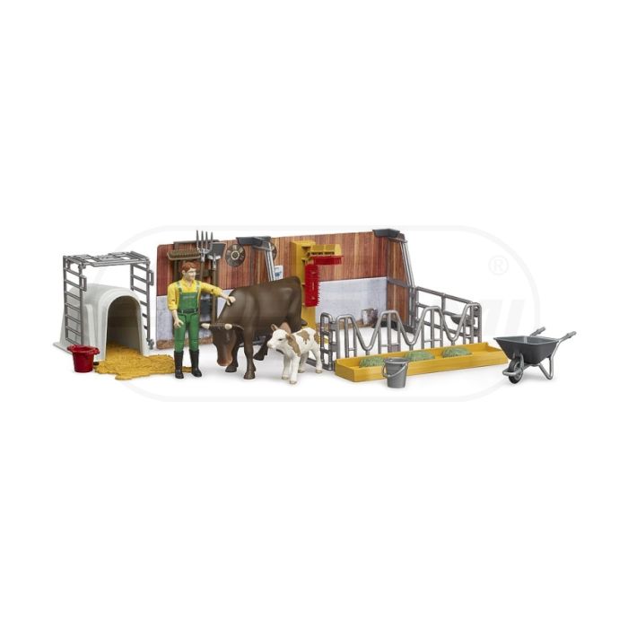 Obora z figurkami rolnika, krowy i cielaka Bruder 62611 BR-62611 BRUDER